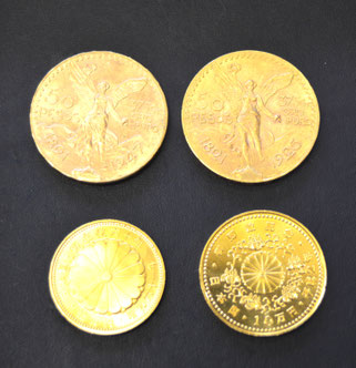 メキシコのペソ金貨は約100年前の金貨と80年前の物でアンティーク金貨の雰囲気バッチリです!!